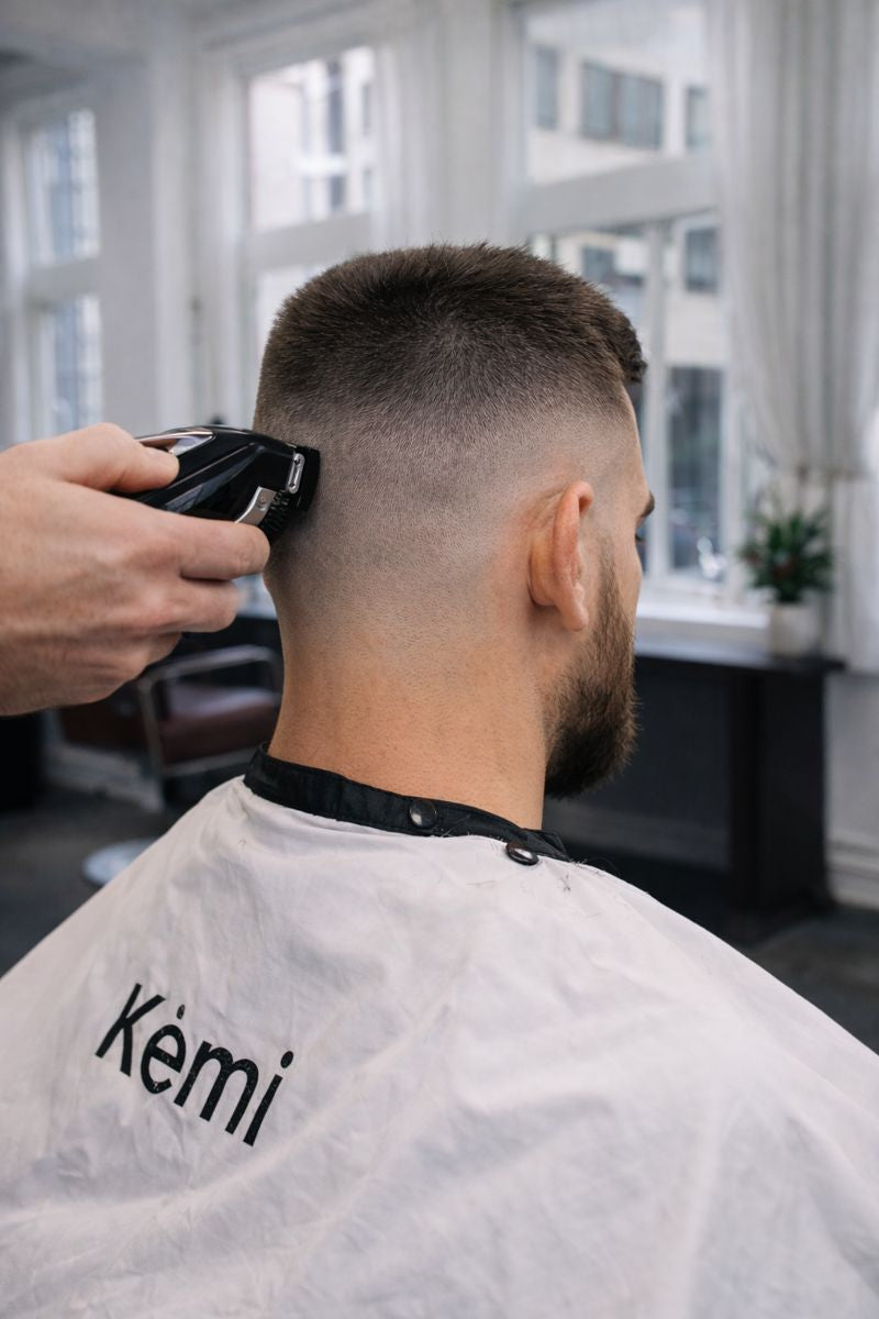 A clean, modern fade without going all the way to skin, perfect if you like a sharp finish with a slightly softer grow-out. We tailor the blend to suit your head shape and style preference, keeping it balanced and polished. Finished with styling so it sits right the moment you walk out.